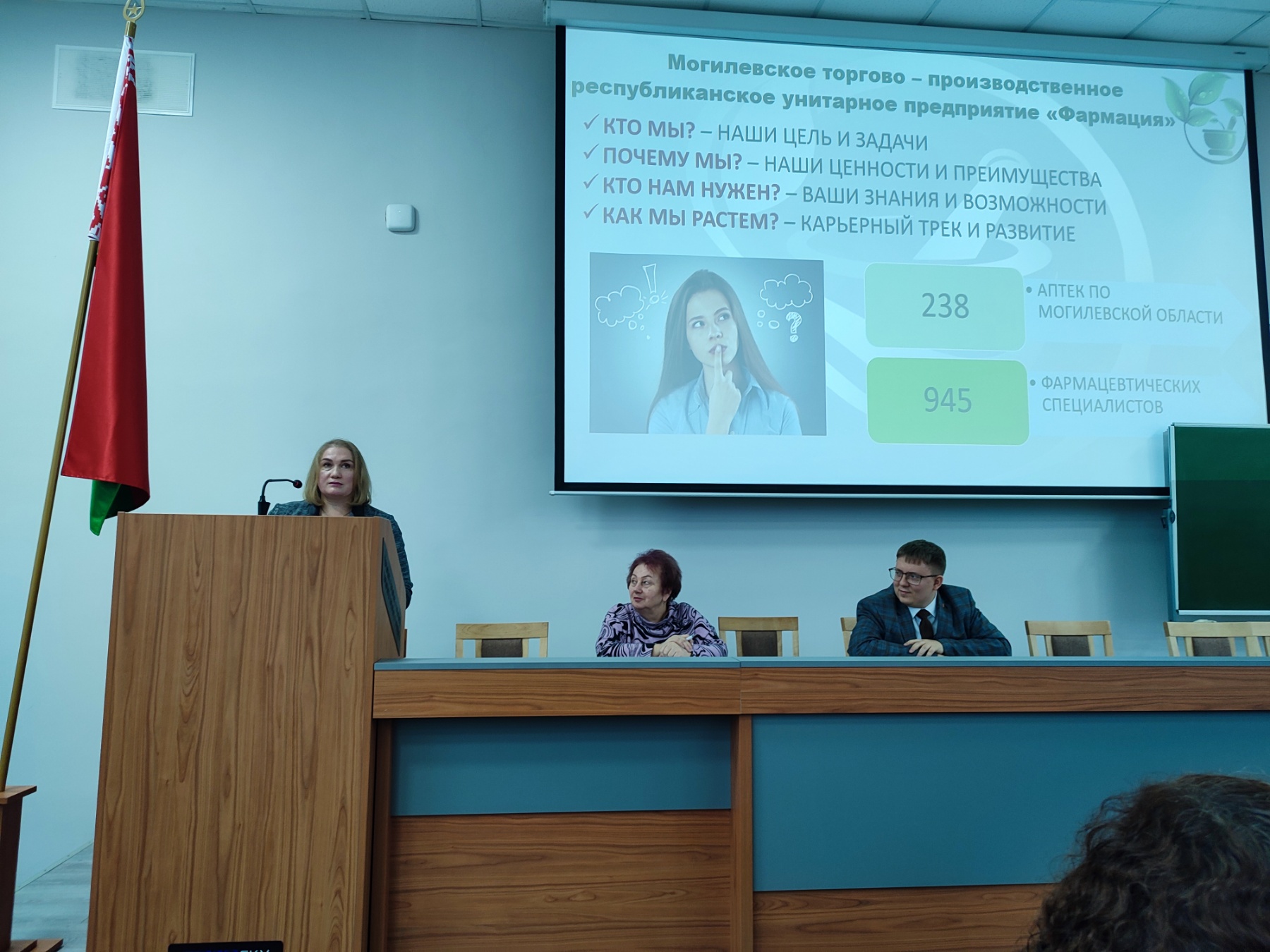 28 ноября 2025 г. состоялась Ярмарка вакансий для студентов 4 и 5 курсов фармацевтического факультета учреждения образования «Витебский государственный ордена Дружбы народов медицинский университет», в которой приняла участие начальник отдела кадров Макаренко Ольга Владимировна.