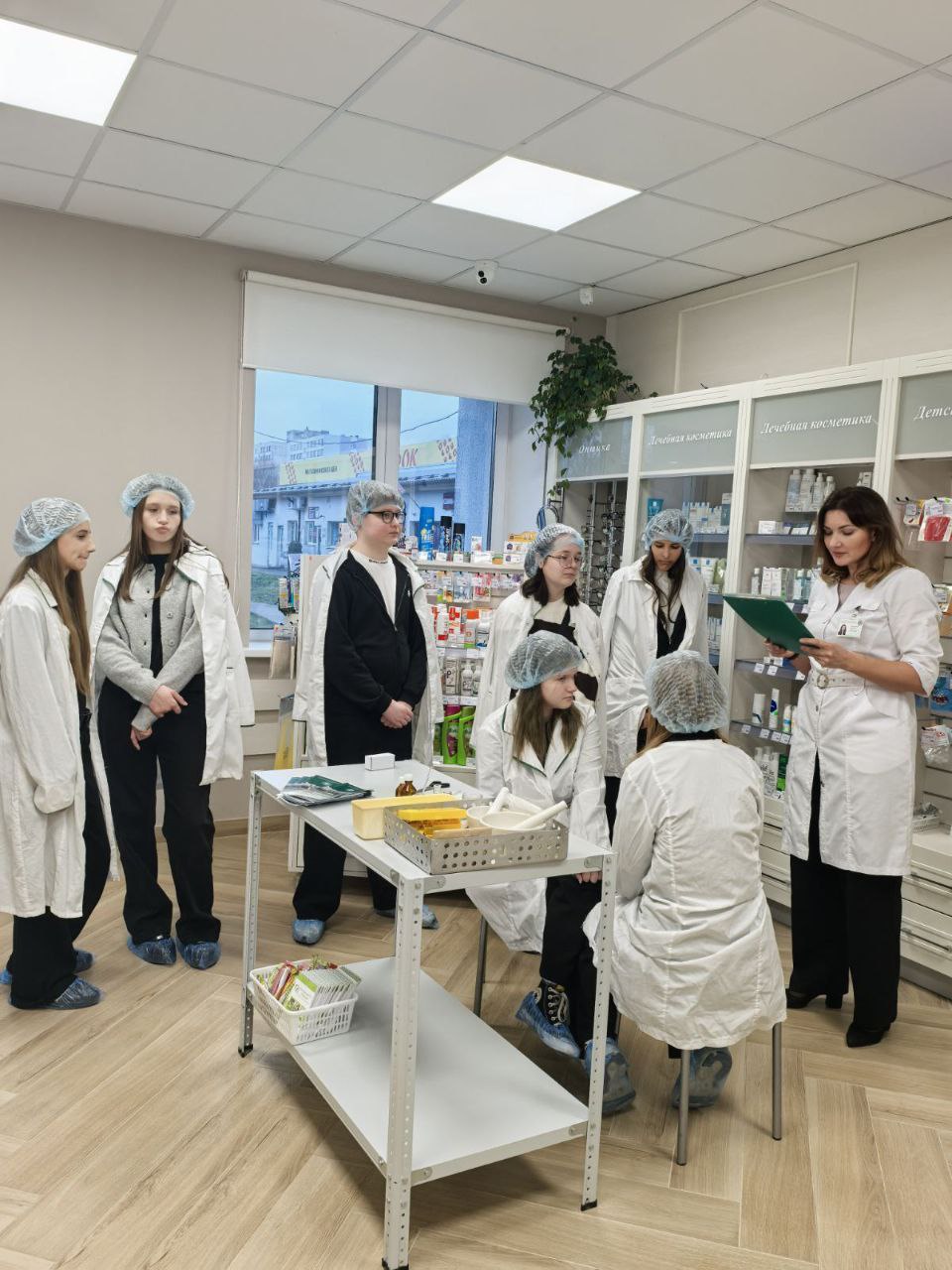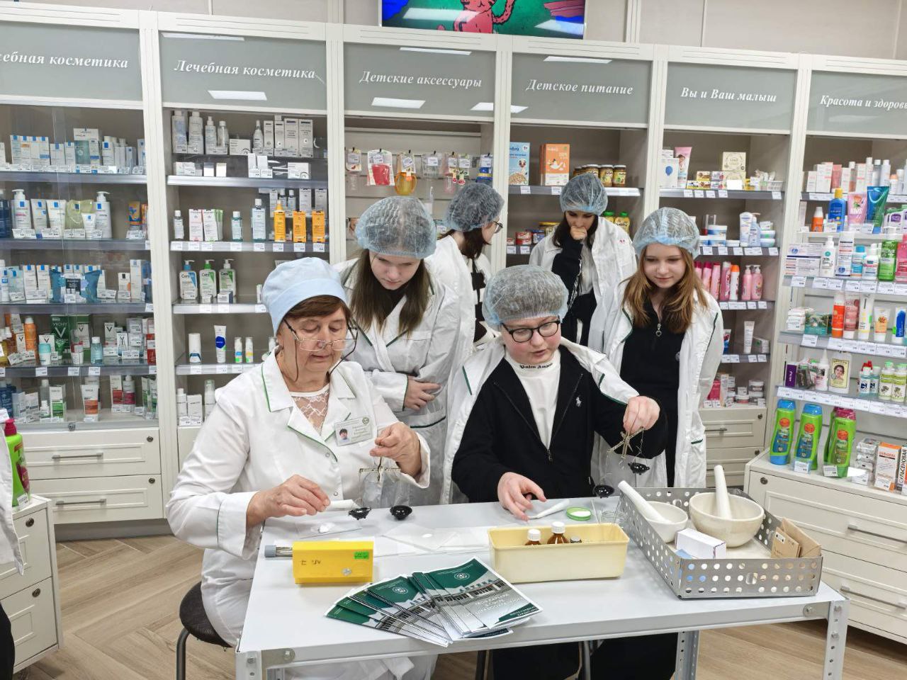 Заведующие аптеками провели для школьников экскурсии по аптеке, в ходе которой они узнали об особенностях работы современной аптеки, о строгих правилах хранения лекарственных средств и том, какую важную роль играет провизор и фармацевт в системе здравоохранения.