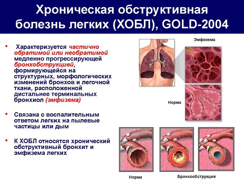 ХОБЛ (хроническая обструктивная болезнь легких) - это хроническое воспалительное заболевание, для которого характерно устойчивое нарушение движения воздушного потока из легких. Наиболее известные термины «хронический бронхит» и «эмфизема» больше не используются, в настоящее время они включены в диагноз ХОБЛ.